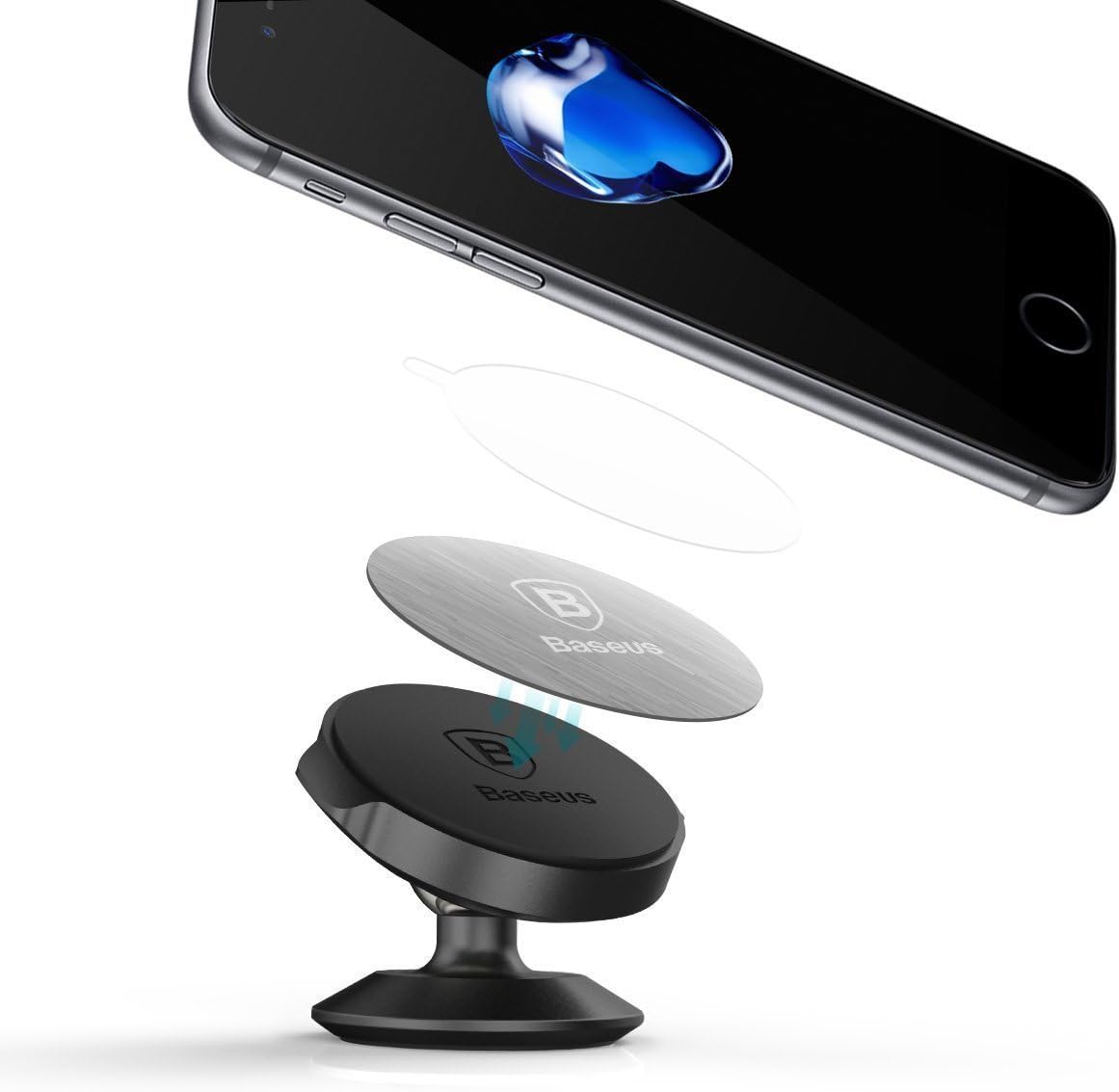 Кріпиться до плоских поверхонь за допомогою 3M липкої стрічки. Корпус тримача зроблений з алюмінію. Мобільні пристрої кріпляться до тримача на магніті, який обертається на 360° завдяки шарнірному механізму.