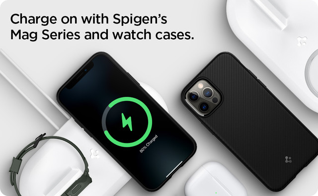 Spigen Mag Fit Duo, призначений для підставки зарядного пристрою MagSafe для моделей iPhone 13, iPhone 12/підставки для Apple Watch для всіх серій/чохла для заряджання Airpods MagSafe.